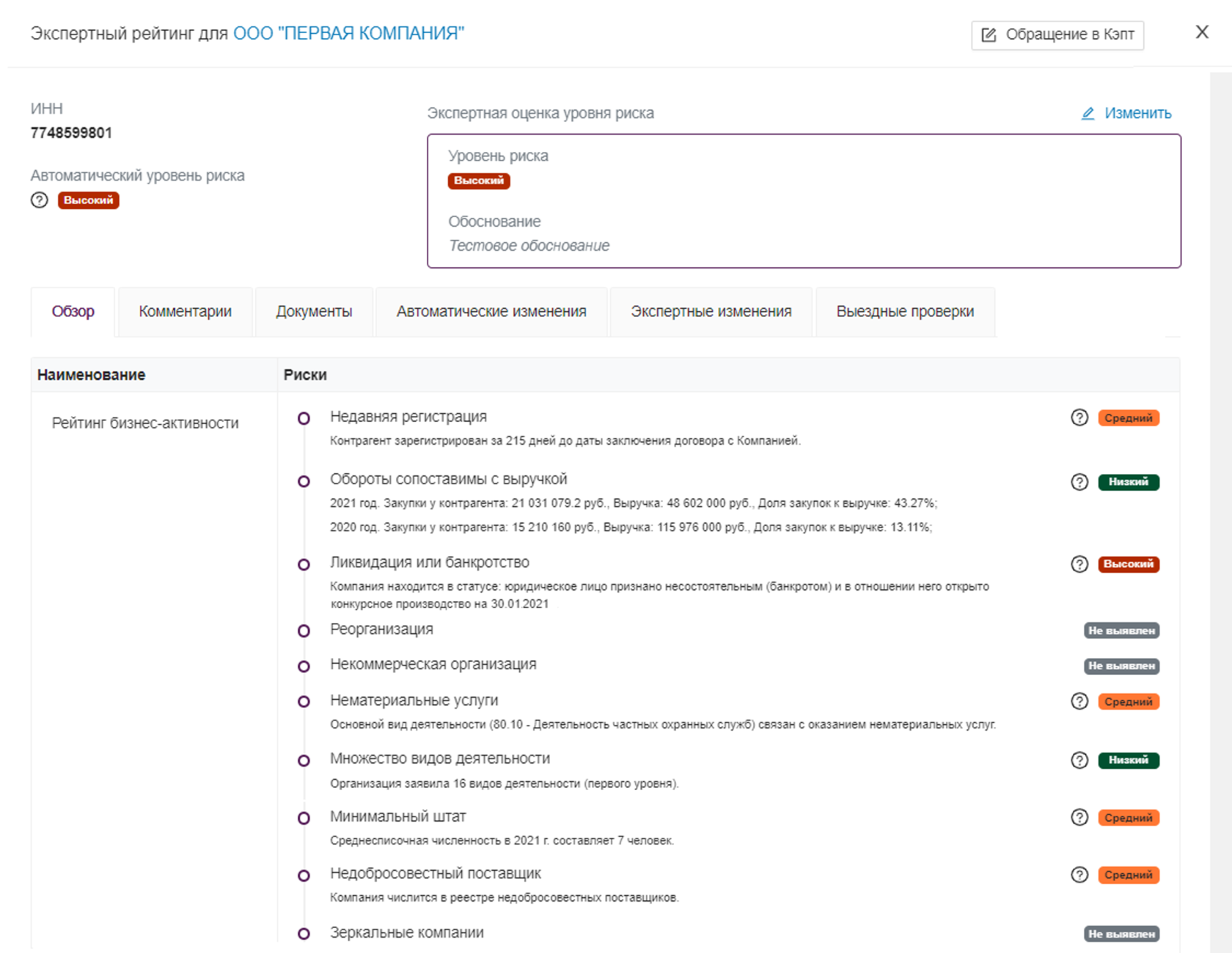 Verification of 50+ risk indicators and calculation of counterparty risk rating