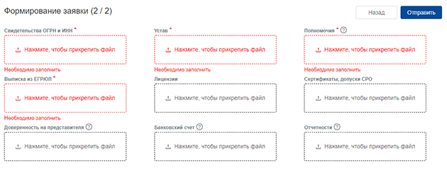 The supplier, using the portal, sends information and documents to the responsible employees for consideration