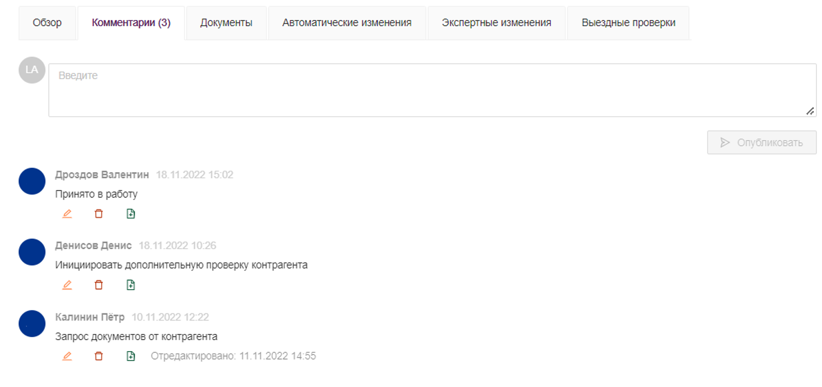 This module automates interaction with potential suppliers on requests and provision of documents for participation in tender procedures. Typically analysis of documents and verification of a counterparty is conducted manually and time consuming.