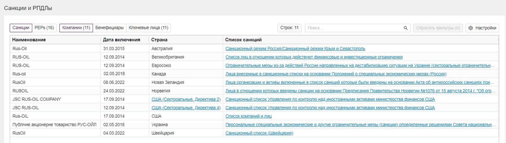 Checking inclusion of a company and its key individuals in the international black and sanctions lists