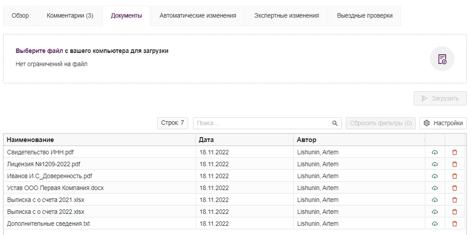 Загрузка и проверка документов, возможность импорта из CRM, ERP и тендерных площадок